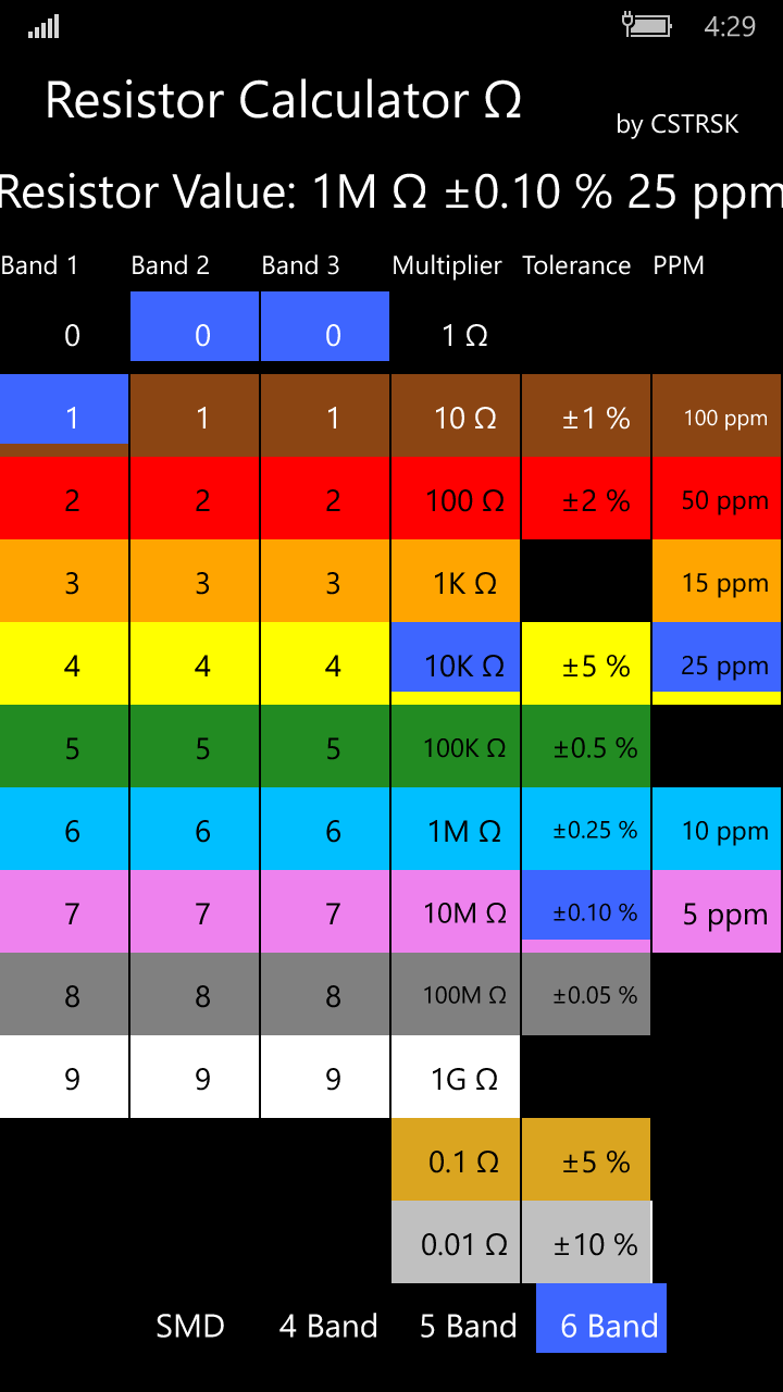 Also if your Android version doesnt. A program that decodes 4 or 5 band coded resistors. Resistor Color Code Calculator provides you with an intuitive and lightweight application that can be used for determining the value of a 4 band resistor without knowing the color codes.